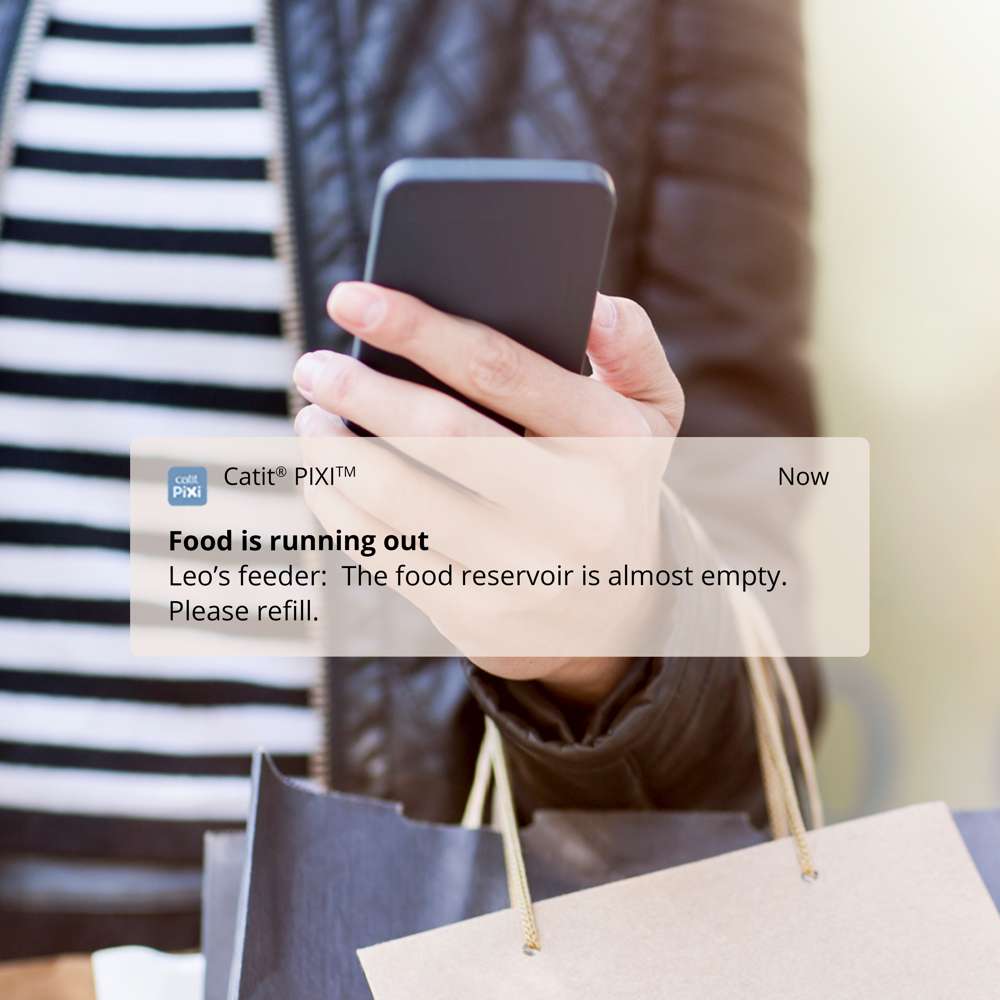 Enable push notifications to get notified as each meal is served. PIXI will let you know when it’s time to add more food to the reservoir.