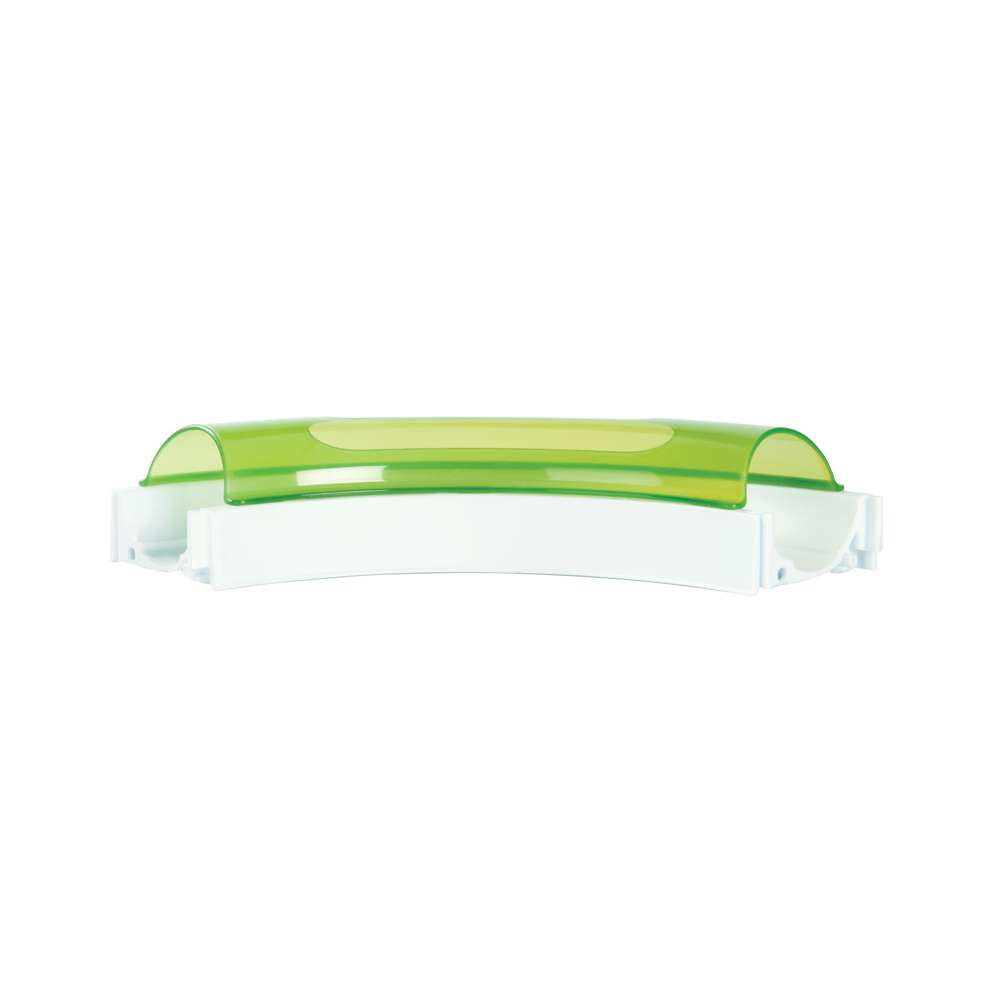 - Green translucent cover and white coloured bottom