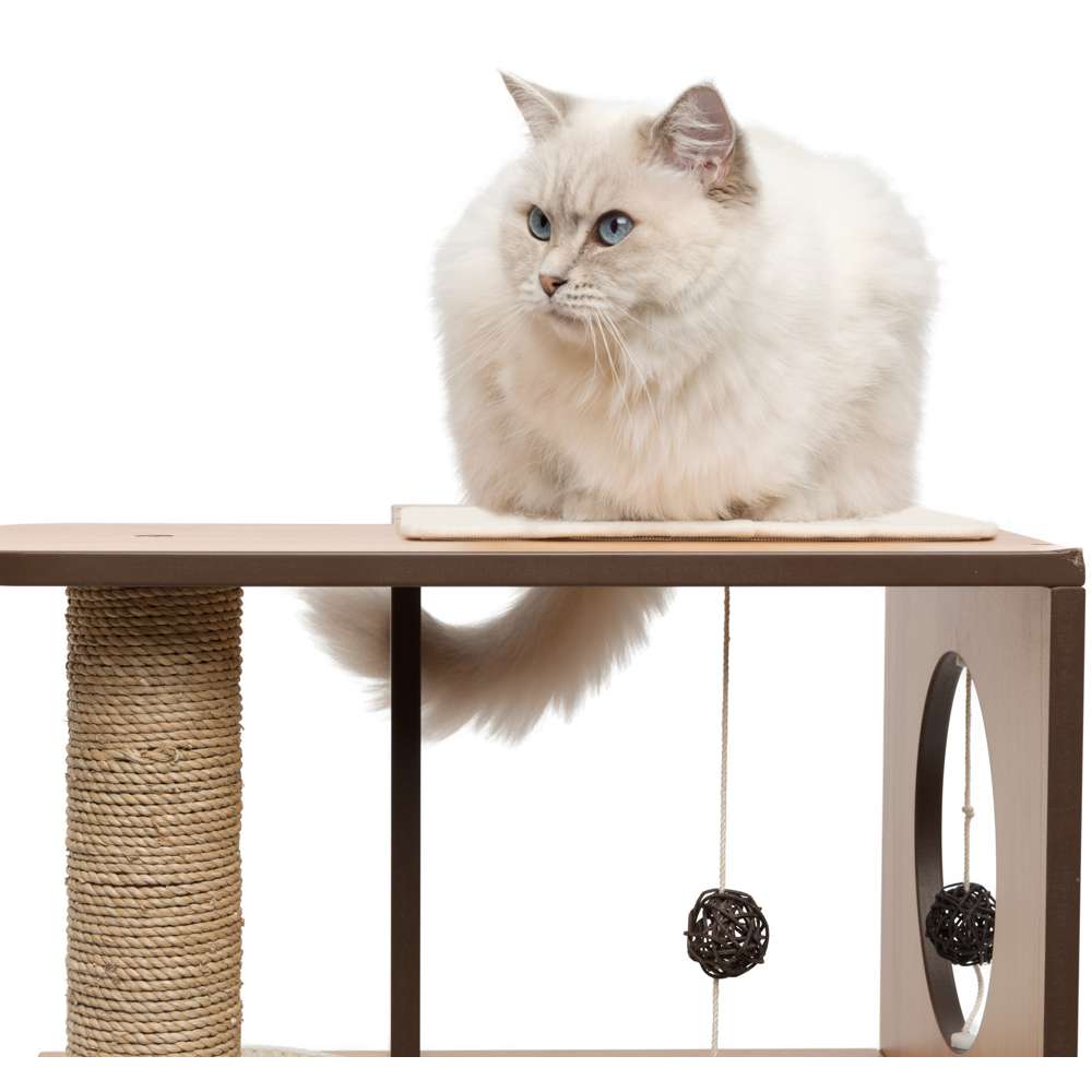 The Vesper Box is a compact adventure world with extra-long scratching post. Multiple levels and lounging spots offer the opportunity to relax and play while the extra-long scratching pillar invites your cat to sharpen its claws in an elongated posture.
